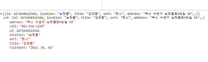 개발자도구 > 애플리케이션 > local storage를 보면 키 로 contents가, 값으로 위와 같은 json데이터를 볼 수 있습니다.