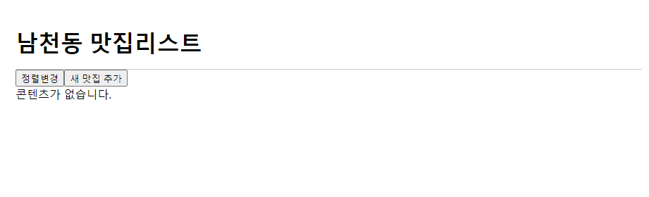 contents.length가 0이라면 콘텐츠가 없다는 표시를 해주도록 만들었기에 위와 같이 나타납니다.